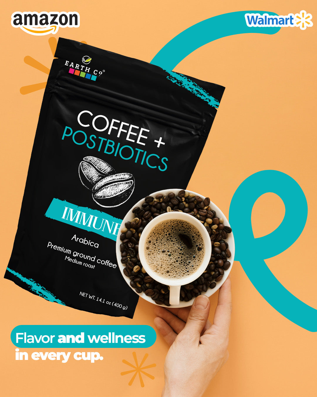 Immune: Coffee + Postbiotics / Ground Coffee (Cost / Oz $2.33) ORGANIC USDA